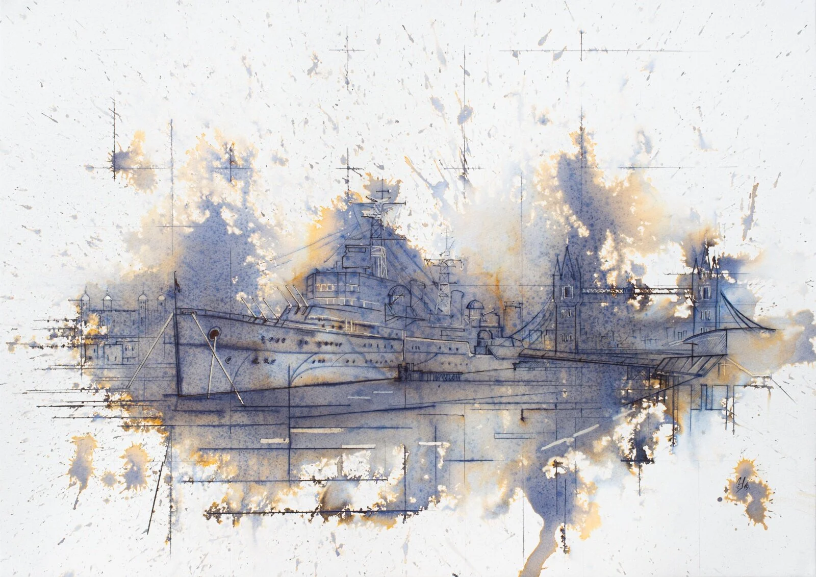 Later on, I’ve done the second artwork in the series. It has sligtly different character. It become stronger and brighter. The nature here (The River Thames) is complemented by a powerful view – HMS Belfast, Tower of London, Tower Bridge. There are symbols of power and majesty of Great British.